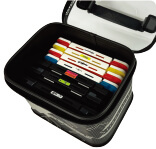 ワームケース、ジグヘッドケース、ライン類などのアイテムをまとめて収納できる小型バッカンです。フタ部分は透明素材を使用しており外から中身の確認ができます。